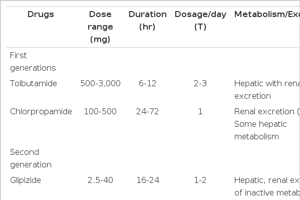설폰요소제는 제2형 당뇨병 환자의 치료에 사용된 최초의 경구 약제이며 지금까지 가장 많은 임상 연구 자료를 가지고 있는 경구약제이다. 설폰요소제는 췌장 베타세포에 존재하는 특이 수용체에 결합함으로써 세포내 칼슘유입을 증가시켜 직접적으로 인슐린 분비를 자극하는 약리 작용을 가지고 있다. 일부 연구에서는 혈중 글루카곤 농도를 감소시키는 것으로 보고되고 있고, 췌장외 작용도 가지고 있는 것으로 나타나지만 이는 혈당 감소에 의한 포도당 독성(glucotoxicity)의 개선에 기인한 것으로 설명되고 있다. 다양한 임상 연구에서 설폰요소제는 당화혈색소를 약 1.5% 정도까지 감소시키는 것으로 나타났다. 그러나 UKPDS 자료에서는 9년간 설폰요소제를 단독 치료로 유지한 경우 당화혈색소 7% 이내로 치료 목표를 유지하는 환자들은 단지 21%에 지나지 않은 것으로 보고되면서 장기간 치료 실패에 대한 문제가 거론되었다[7].