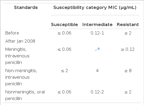 Revised penicillin breakpoints for Streptococcus pneumoniae (Jan 2008)-Clinical and Laboratory Standards Institute