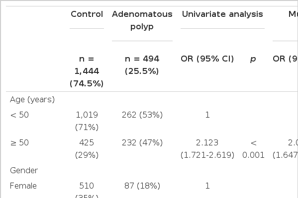 대장 선종성 폴립의 위험인자에 관한 단변량 및 다변량 분석