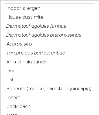 알레르기 비염과 관련된 주요 알레르겐은 크게 실내 알레르겐과 실외 알레르겐으로 나눌 수 있다(Table 1).