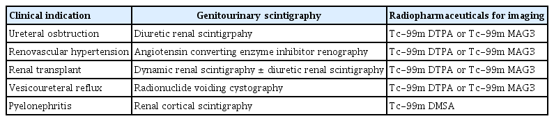 Tc-99m DTPA는 사구체에서만 순수하게 여과되는 신장 영상용 방사성 의약품으로 신장을 영상화하면서 동시에 사구체 여과율(glomerular filtration rate, GFR)을 측정하는 데 사용할 수 있는 유일한 방사성 의약품이다[2]. 단백질과의 결합이 다소 유동적이어서 GFR을 다소 과소평가할 수 있다는 단점이 있지만 보통의 경우 5% 미만에서 단백질에 결합하며 영상법으로 측정한 GFR은 임상에 적용될 수 있을 정도의 타당한 검사이다. 영상의 질은 Tc-99m MAG3에 비하여 떨어지지만 임상 적용에 무리가 없는 좋은 신장 영상을 얻을 수 있다.